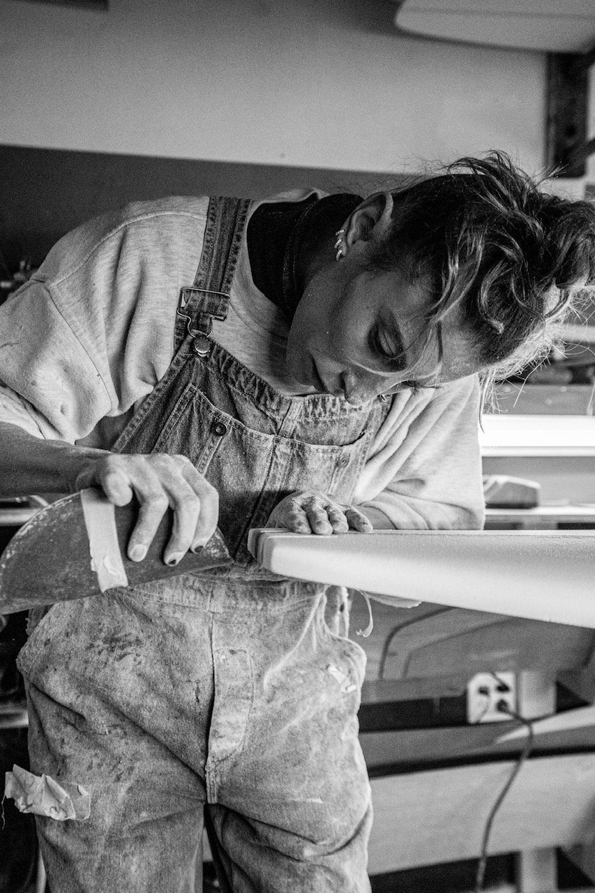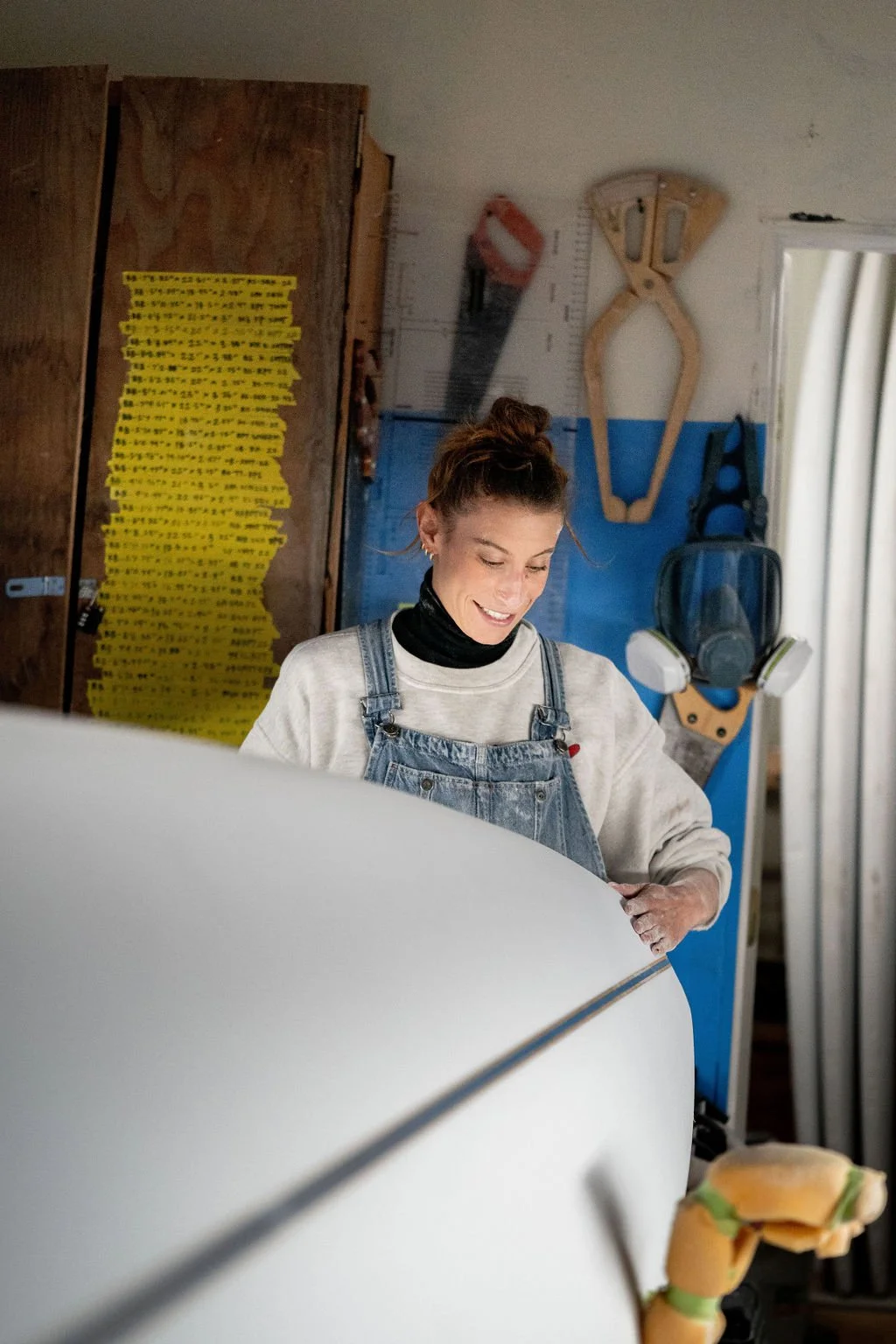 With over five years immersed full-time in the craft, Fantine has shaped her path under the guidance of masterful local mentors. When not shaping under her own label, she brings boards to life as a full-time glasser at Hotdog Glassing, collaborating with renowned names like Mando Surf Co., Ashley Lloyd Surfboards, Steve Blaylock Surfboards, Boyton Surfboards, and Swell Cycle Surfboards.